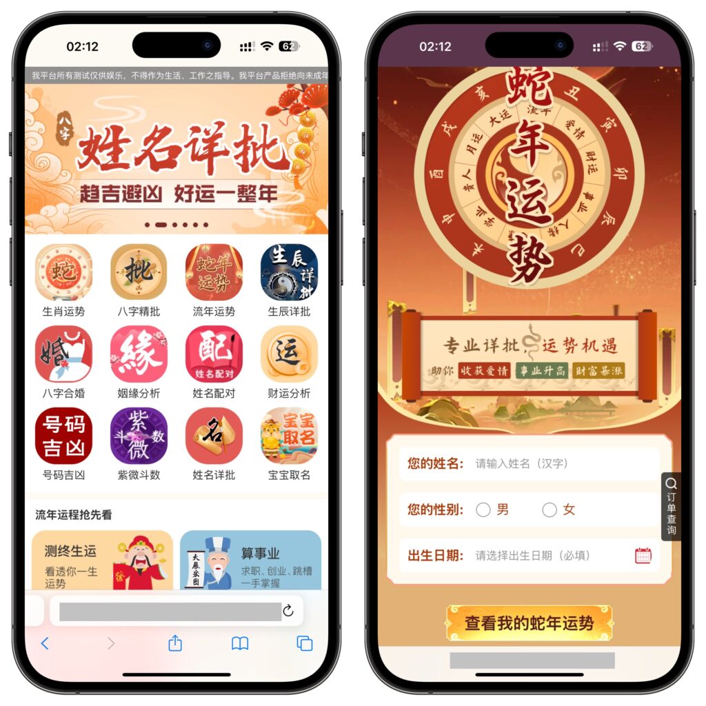 2025蛇年运势测算、网站源码、 风水起名、八字算命、算财运姻缘等第三方支付去除虎皮椒支付改用易支付 (通用市面彩虹易支付) !越来越多移动端智能应用的出现,将用户的需求不断的细化,传统的命理占卜行业也要随时互联网的洪流随之前进,让用户可以足不出户即可享受八字测算的乐趣,本源码为付费测算可以为你带来超强的变现能力。